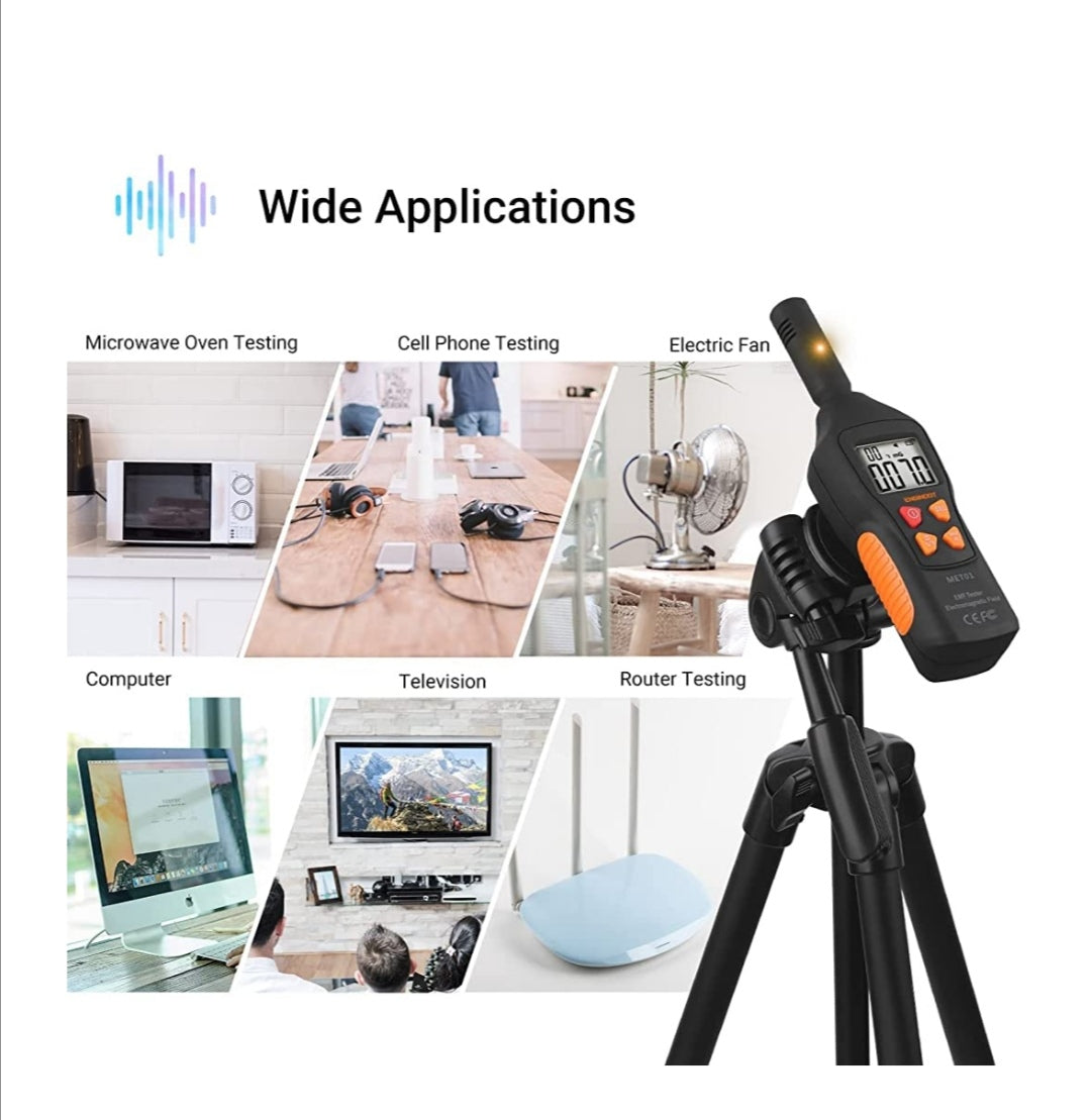 Wide Application This EMF meter detects invisible radiation around you and make sure you have a healthy and safe daily life. The home EMF inspector can be used to test TV, induction cooker, refrigerator, cell phone, computer, electrical wires, WIFI signal, wire tower, and any other low-frequency home appliances, etc.