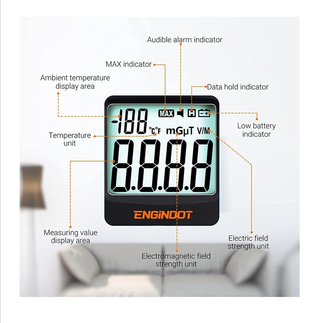 Multifunction This EMF reader meter has multiple functions includes data hold & max measurement, one-key to lock the data, manual/auto shut off, safe value setting, and large LCD display of the values with the sound light system. All designed for your convenience.