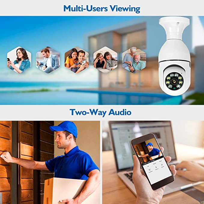 💡【Real-time Alert & 2-Way Talk】- Motion alerts will be sent to your device while you're away to keep you informed of every potential danger at your home. You can work with peace of mind by Bulb Camera WiFi indoor, which allows you to keep in touch with your family or pets anywhere anytime with built-in speaker.