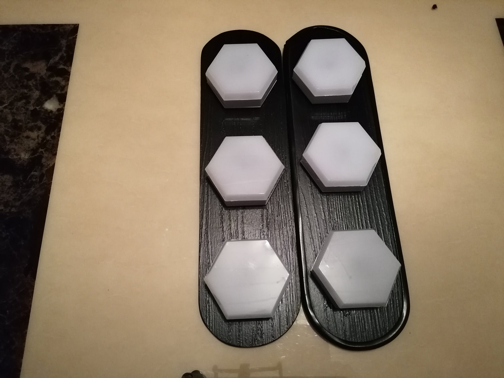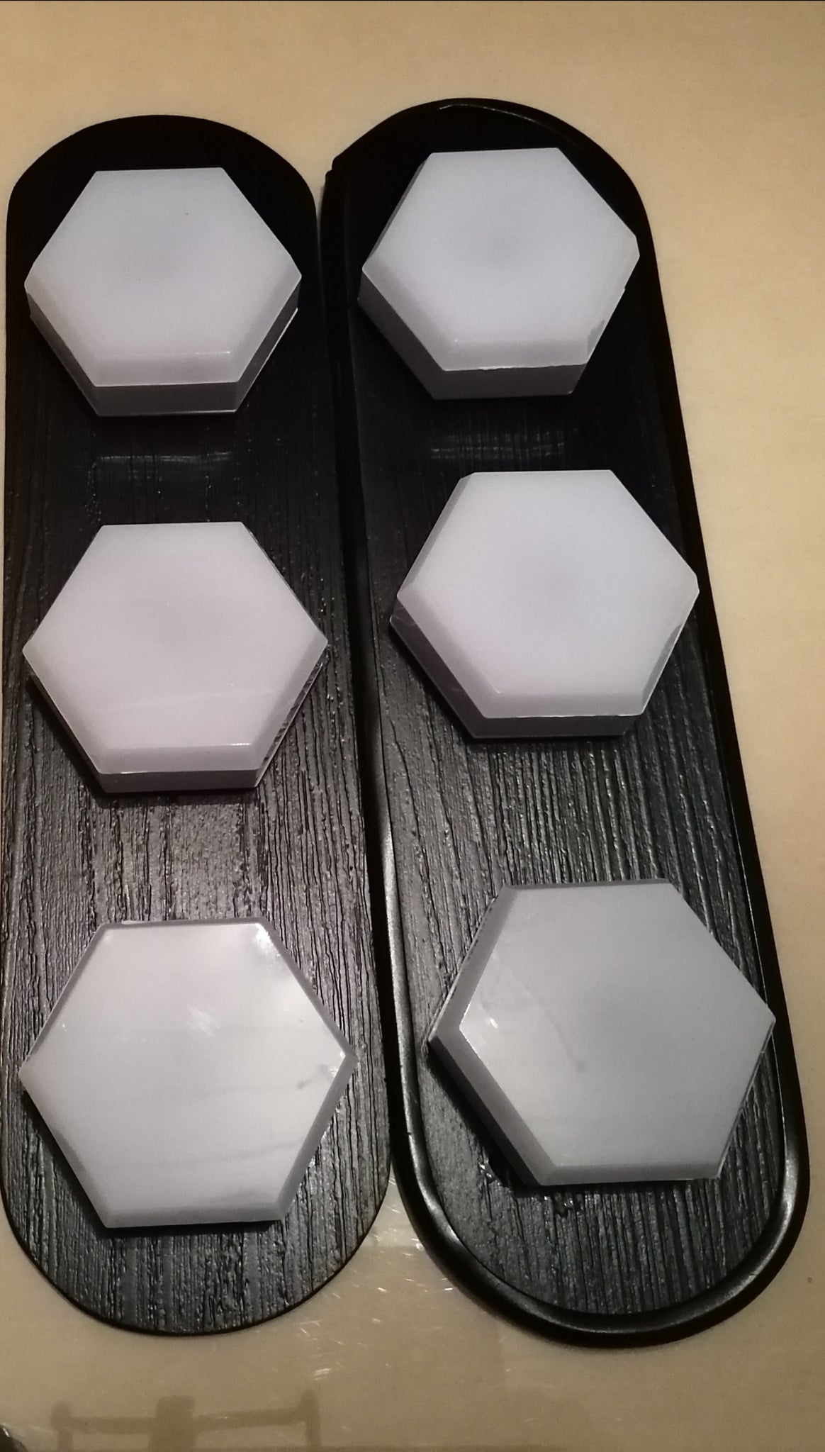 3 seperate light on a hard durable pannel colour will be black you have a choice of a rubber around the board or not.